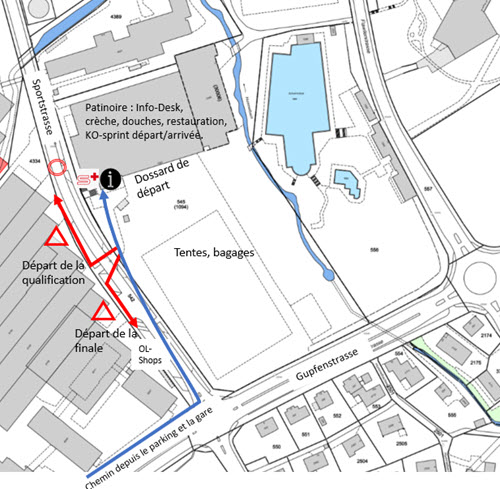 Important : Il n'y a pas de toilettes au départ, pas de dépôt de vêtements. La zone d’échauffement est indiquée.